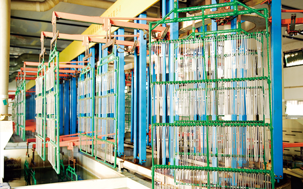 公司現有固定資產6000余萬元,員工300余人,現具有年產噴氣異型筘12萬米,劍桿筘32萬米,噴水筘5萬米,綜框20萬片,鋼片綜2億片,停經片1.5億片, 織軸1.2萬套的生產能力。公司“越泉”商標被評為“中國馳名商標”。公司通過ISO9001 :2015國際質量體系認證,ISO14001:2015國際環境管理體系認證,ISO45001:2018國際職業健康安全管理體系認證,噴氣織機用鋼筘和織機用鋁合金綜框獲得“浙江制造”品牌認證,公司擁有自營進出口權,產品暢銷全國并遠銷印度、巴基斯坦、土耳其、埃及、哥倫比亞、意大利等國家和地區。